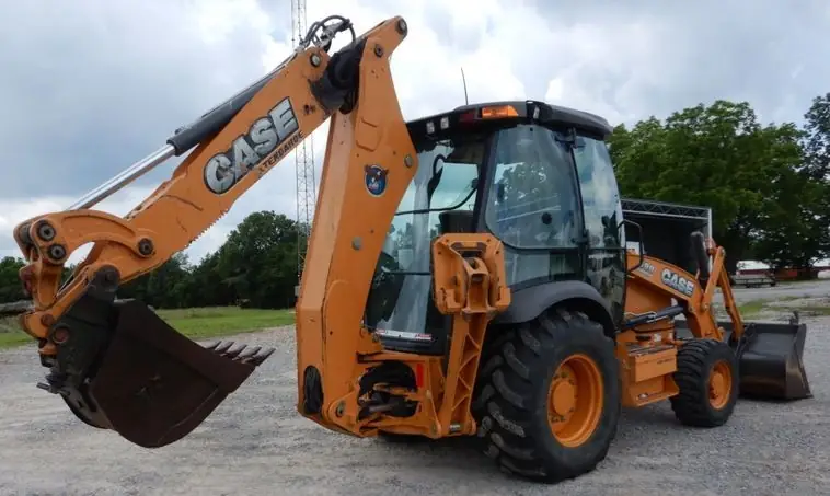A high-performance 97 hp backhoe loader featuring superior breakout force and “PowerLift” technology for heavy-duty digging.
